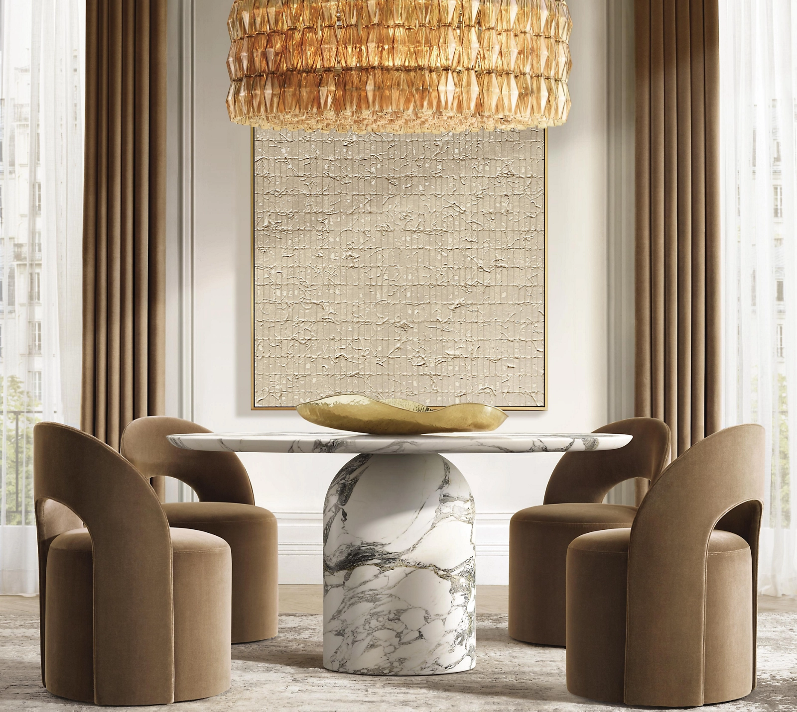 Marbella – Inspired by the elegance of marble, with a luxurious touch. Masterfully crafted in wool and jute, Marbella's flowing patterns and serene hues echo the natural veining of marble. Hand-spun yarns enhance its organic charm and lend a soft, textural elegance to the sheared pile.