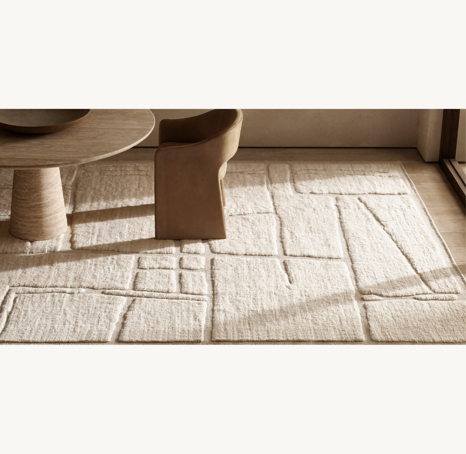 Velora evokes a sense of luxurious, velvety texture and refinement, perfectly aligning with the soft, sculpted pile and the high-end craftsmanship of your rug collection It showcases a modern design with its luxurious, sculpted pile. Handcrafted from natural wool, the spun fibers create a soft, silky texture, offering subtle shading and a refined finish that accentuates the rug’s high-low effect.