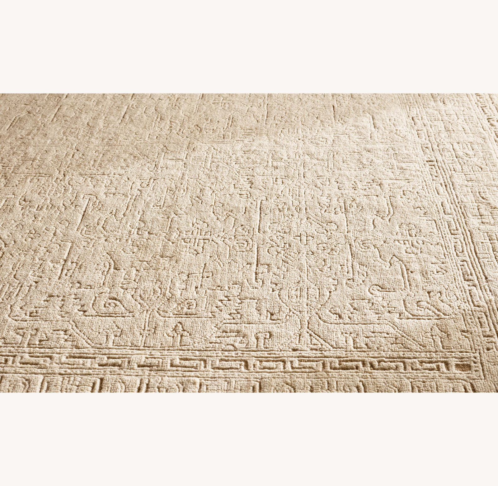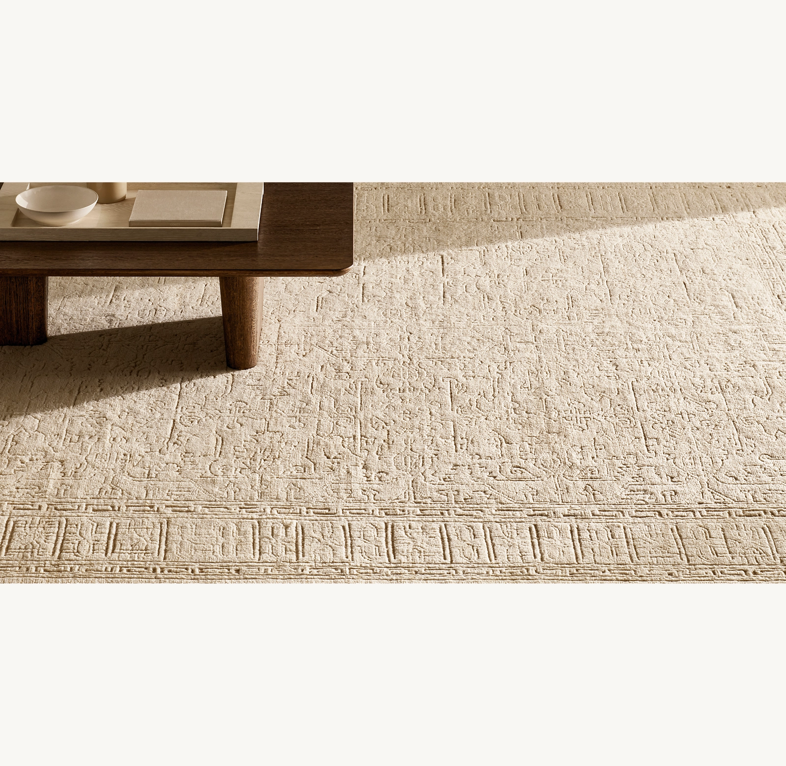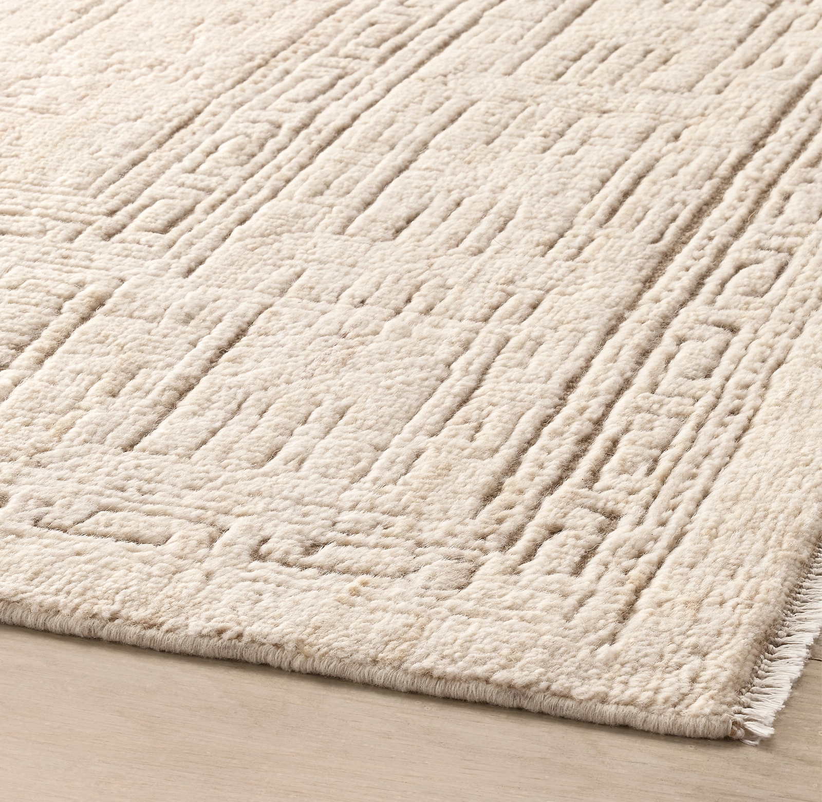 To clean your Verdura rug, spot clean as needed using a damp (not wet) cloth with plain water, avoiding soap or cleaning products as they could damage or fade the rug. For regular maintenance, vacuum using suction only and refrain from using bristles. For larger or deeper stains, it’s recommended to send the rug to a professional cleaning service that specializes in fine rugs. If you notice any loose yarns, do not pull them; instead, trim them to match the pile height. To prevent uneven fading and wear, rotate the rug every three months. To prolong the life of the rug and maintain its quality, we recommend using a rug pad.